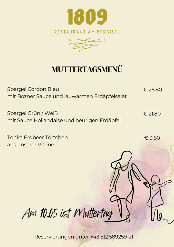 Am 10. Mai ist Muttertag und wir möchten gemeinsam mit Ihnen diesen besonderen Anlass gebührend feiern. Im Restaurant 1809 am Bergisel erwartet Sie und Ihre Liebsten ein exklusives Muttertagsmenü, das die Herzen aller Mamas höherschlagen lässt.