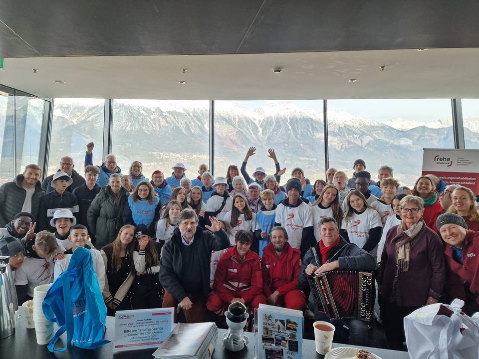 Die Veranstalterinnen der myCOPD-Challenge in Tirol, die Reha Innsbruck und die COPD-Austria, blicken auf ein erfolgreiches Event am 19. November 2025 am Bergisel zurück. Die 6. myCOPD-Challenge möchte auch dieses Jahr wieder auf die Erkrankung „COPD" aufmerksam machen und Betroffenen Mut machen, auch mit COPD weiterhin sportlich aktiv bleiben kann. So werden der Krankheitsverlauf und die Lebensqualität positiv beeinflusst. Über 20 COPD-Patient*innen bewältigten die 283 Stufen des Bergiselturms. Zahlreiche Unterstützer*innen, darunter Schüler*innen der Sportmittelschule Hötting West und der Volksmusiker Marc Pircher, waren ebenfalls vor Ort. Im Anschluss an den Stufenlauf gab es einen Ausklang mit Snacks und Getränken im SKY Restaurant im Schanzenturm.