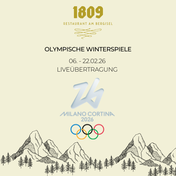 Wenn die besten Athlet*innen der Welt um olympisches Gold kämpfen, bietet das Restaurant 1809 den perfekten Rahmen, um die spannendsten Wettkämpfe in gemütlicher Atmosphäre zu verfolgen. Von Skispringen über Ski Alpin bis Eiskunstlauf – fiebern Sie mit unseren Athlet*innen bei erstklassiger Küche und einzigartigem Panoramablick über Innsbruck. Wir freuen uns auf Ihren Besuch!